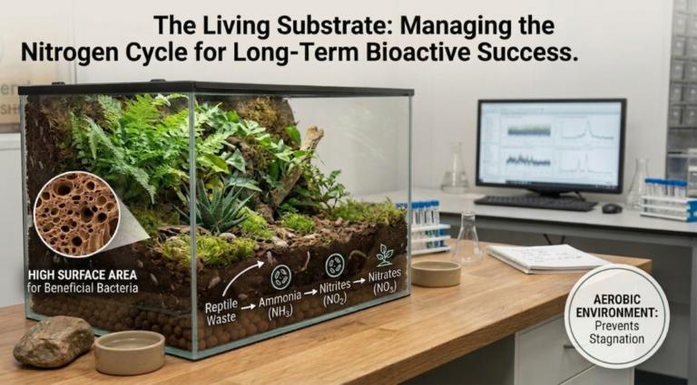 To achieve this, we must shift our perspective. Substrate is not just bedding; it is a complex processing facility for metabolic waste. The moment a reptile releases waste (ammonia), the clock starts on the biological cycle shown in our visual overlays.